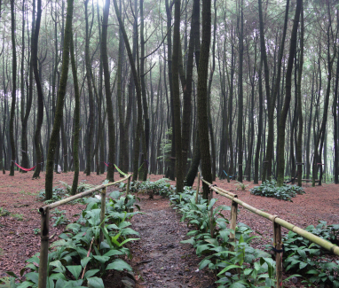 Terletak dekat area perkemahan, hutan pinus indah ini memberikan suasana sejuk di mata